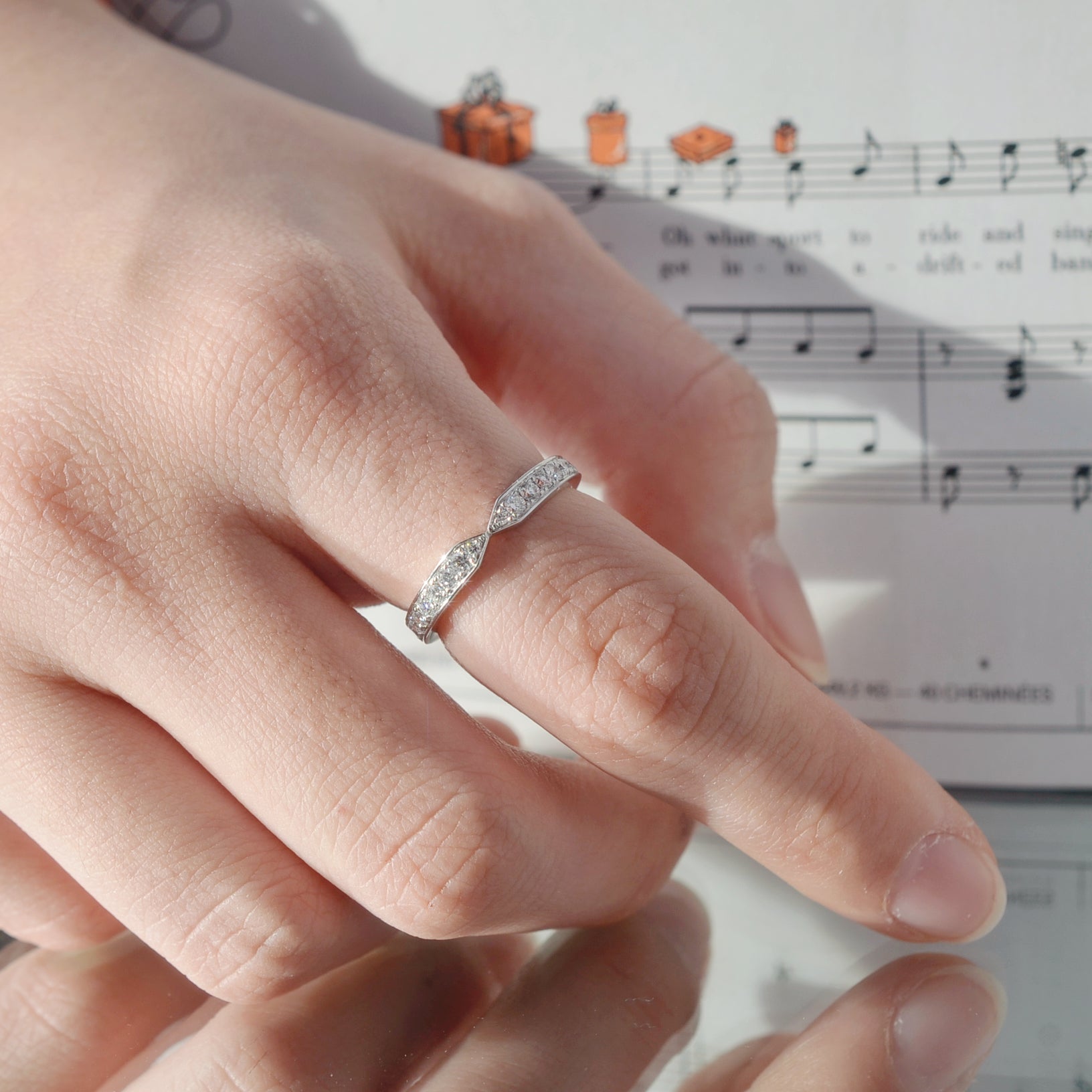 The Beatrice wedding band reveals a line of delicately set round diamonds, creating a soft and harmonious curve with controlled brilliance.