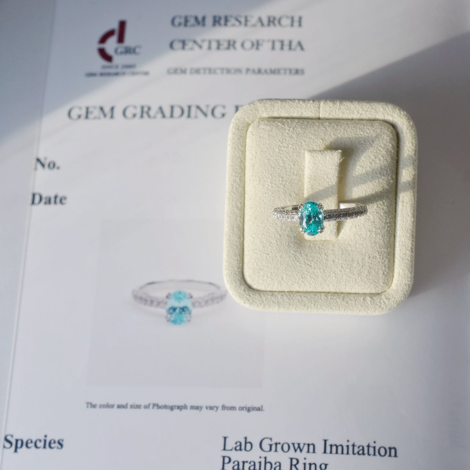 • Ring certified by the Gem Research Center (GRC)